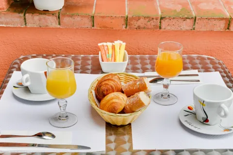 To recharge your batteries in the morning, we invite you to enjoy a delicious breakfast for 8 € per person. The latter is in the form of a buffet sweet and salty served from 8:00 to 10:30 in our breakfast room overlooking the park. We can on request serve you breakfast directly in your room. Hot drinks, fresh fruit, cereals, cheeses, yogurt, croissants, jam, ham, bread, nutella ... There is something for everyone! Breakfast can be served earlier for business on request.